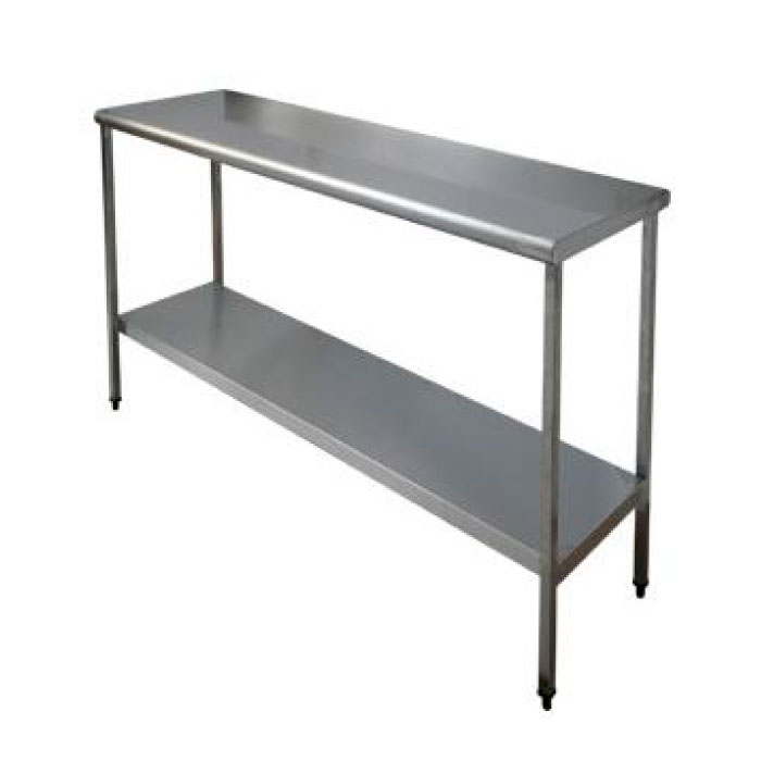 Encimeras y estantes en acero inoxidable AISI 304 con omegas de refuerzo y acabado satinado.